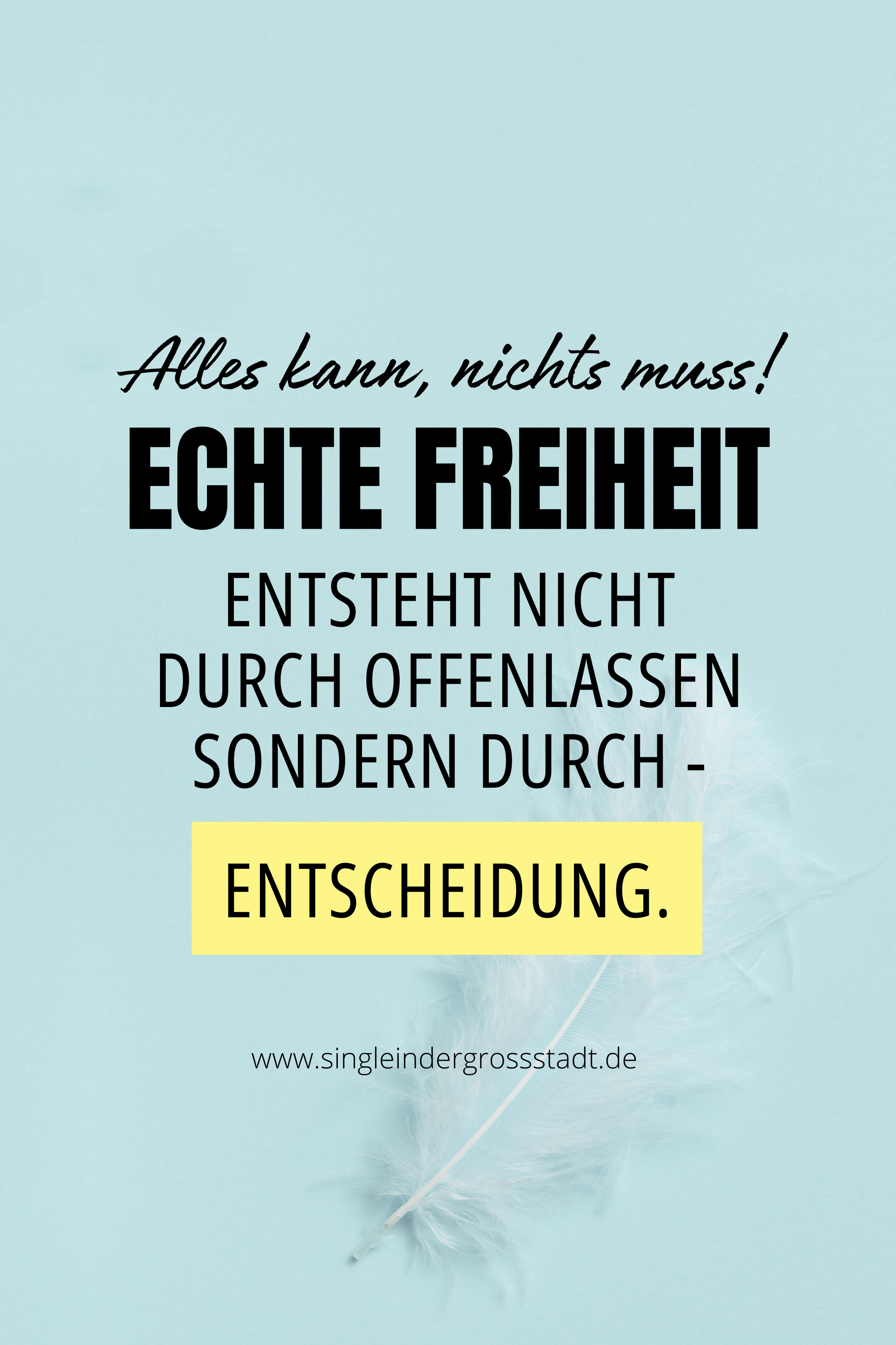 „Alles kann, nichts muss“ klingt nach Freiheit. Aber in Wahrheit ist es oft nur ein eleganter Weg, sich nicht festlegen zu müssen. Und wer sich nie festlegt, lernt auch nie, was echte Nähe bedeutet. Echte Freiheit entsteht erst dort, wo du bereit bist, Konsequenzen zu tragen. Wo du weißt, was du willst – und den Mut hast, dafür einzustehen, auch wenn du dabei etwas verlierst.