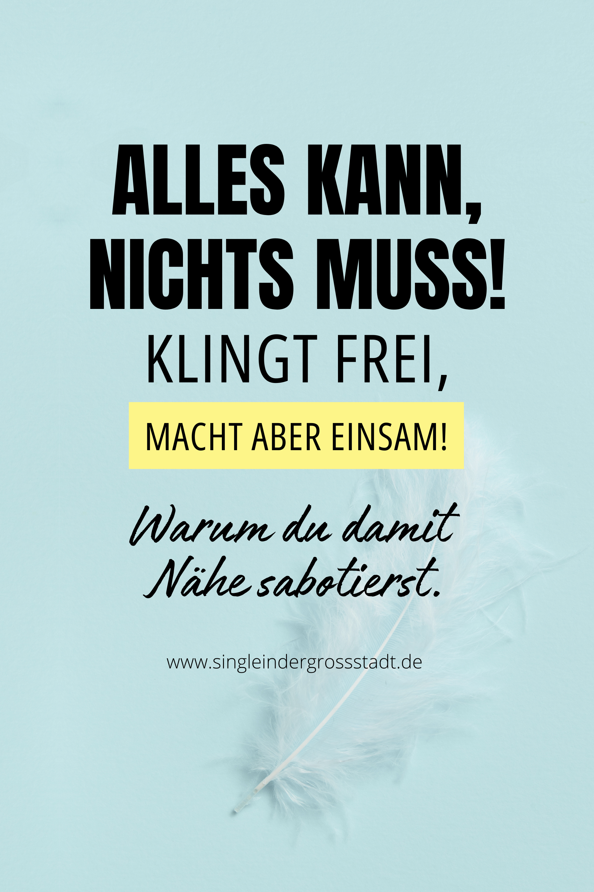 Hinter „Alles kann, nichts muss“ steckt oft eine tiefe Angst vor dem Moment, in dem der andere dich wirklich sieht – mit all deinen Unsicherheiten, Bedürfnissen und Widersprüchen. Denn in dieser Echtheit verlierst du Kontrolle. Und genau das ist das, was Nähe braucht – und wovor sich Menschen mit Bindungsangst (oder Verlustangst) instinktiv schützen.