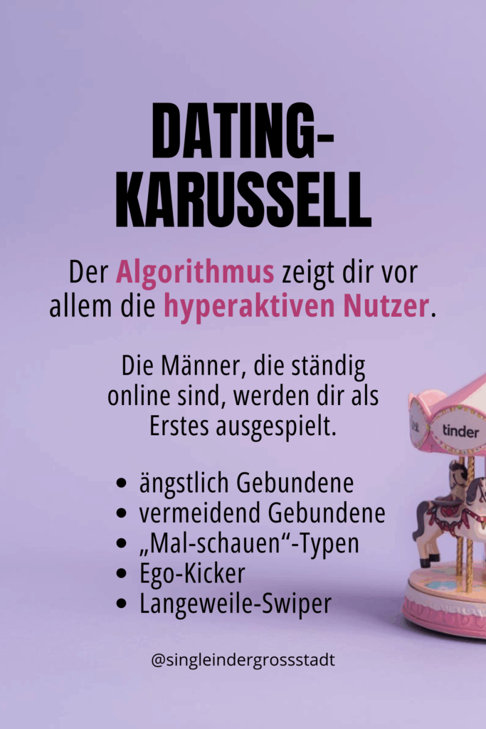 Der Grund ist simpel: Die meisten Frauen betreten das online dating ohne Strategie, ohne klare Intention und ohne Bewusstsein dafür, welche Art von Männern diese Apps besonders stark anziehen. Genau deshalb rutschen sie in dieses typische Muster – ein endloses Drehen im Dating-Karussell, bei dem du viele Gesichter siehst, viele Chats führst, aber kaum echte Qualität findest.