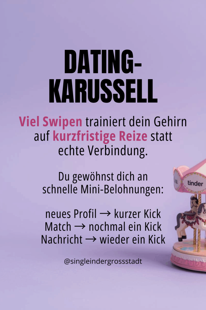 Der Algorithmus sorgt dafür, dass ständig neue Profile auftauchen – egal, ob sie zu dir passen oder kompletter Schrott sind. Dadurch entsteht ein endloser Strom an Möglichkeiten, der dich geistig beschäftigt, aber emotional leer lässt. Du bekommst Mini-Dopamin-Kicks beim Match, Frustration beim Ghosting, Nervosität beim Schreiben – und am Ende kaum echte Verbindung.