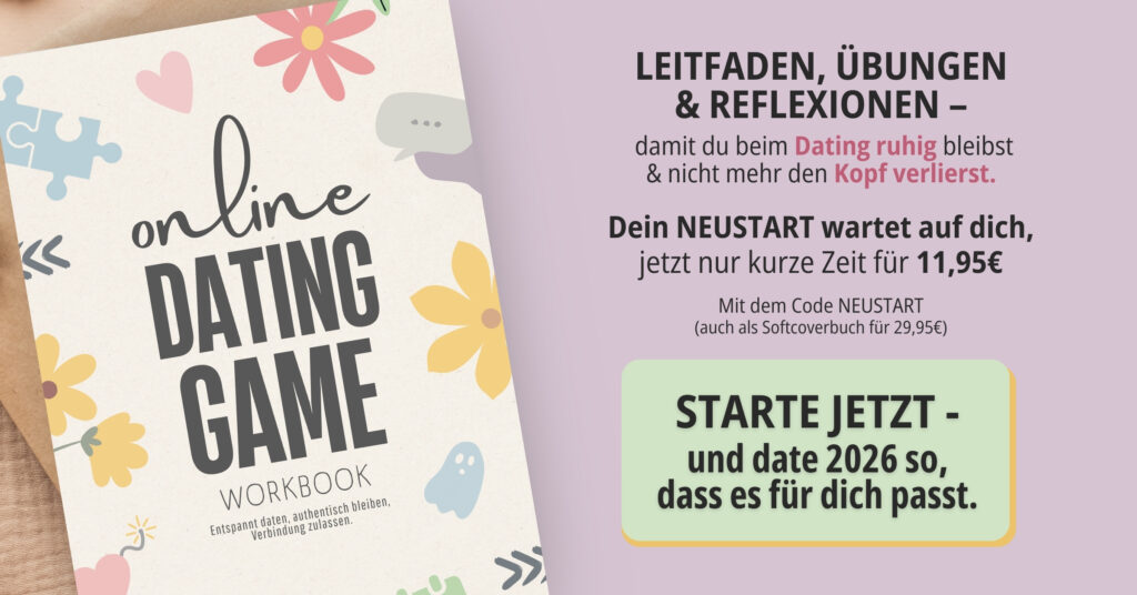 Ich durfte das Online Dating Games Workbook vorab testen – und ehrlich, ich hätte nie gedacht, dass mich das so zum Nachdenken bringt. Ich war total im Modus, Männern zu gefallen. Immer angepasst, immer überlegt, was ich sagen soll, damit ich interessant rüberkomm.