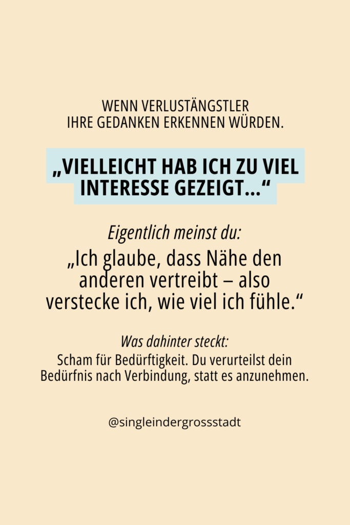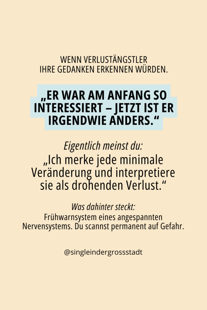 Angst dichtet sofort eine Geschichte dazu: „Er verliert das Interesse, ich war zu viel.“
