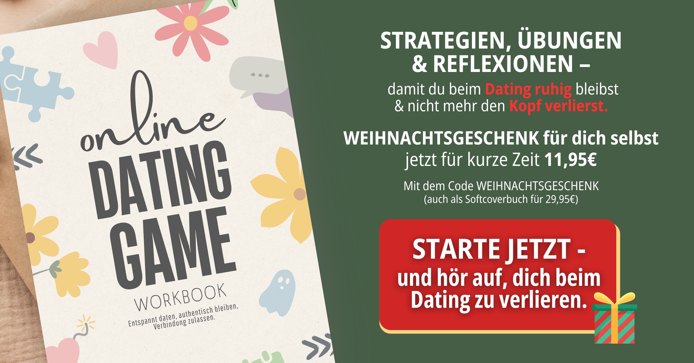 Im Workbook „Online-Dating-Game“ lernst du, deine Muster zu erkennen, gesunde Signale zu deuten und dich nicht mehr von deiner Angst lenken zu lassen. 👉 Hier erhältst du einen Einblick ins Workbook: Online-Dating-Game